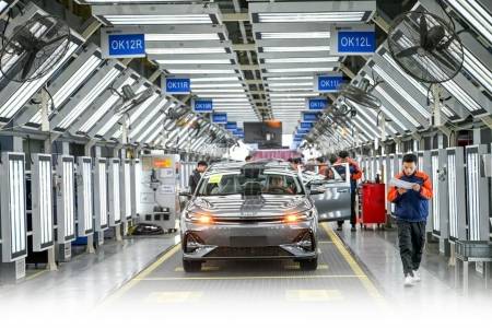 工人在贵州省贵阳市观山湖区一家汽车制造企业的车间内工作。图据新华社客户端