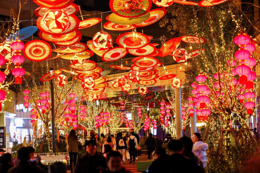 传统文化焕新是本次活动亮点,戏曲美学贯穿南北区域,北区以戏曲头冠、南区以油伞为设计灵感,搭配灯光装置,打造昼夜皆美的水岸景观。市集活动丰富多样,2月6日至8日的年货市集汇聚南北风味与新潮品牌;2月20日至23日的非遗市集集结竹编、拓印等技艺,市民可与手艺人互动、亲手制作,感受传统文化温度。此外,每周末还有京剧、皮影戏等非遗展演及舞龙舞狮、跨朝代巡游等活动,上演流动的古今对话。