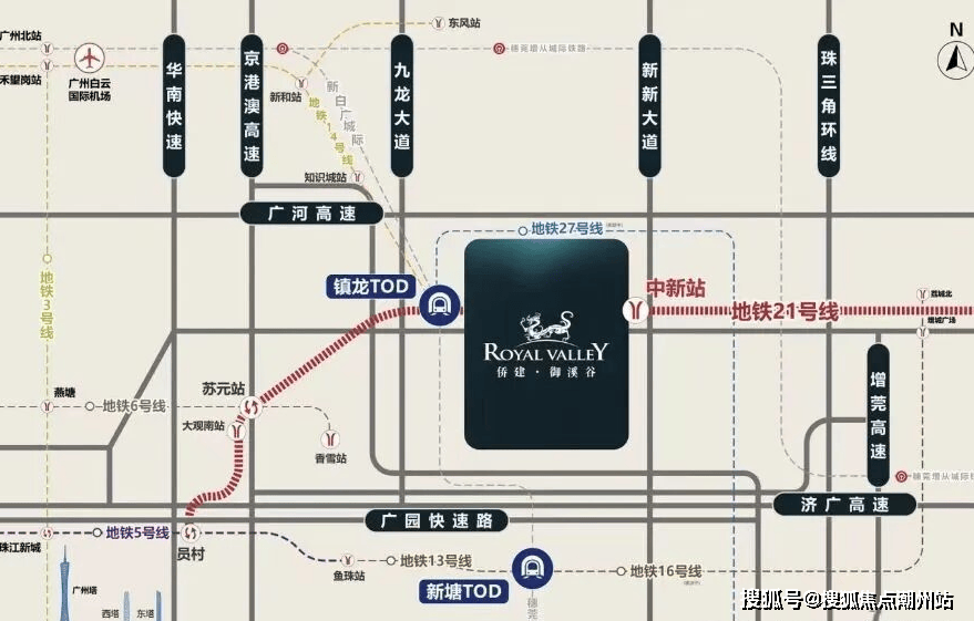 【交通路网】双地铁三轨道,四纵六横交通网络。侨建·御溪谷地处广深科技走廊起始点的中新知识城南,地铁21号线与穗莞深城轨双线交汇之地,地铁口就在社区红线范围内,目前已全线通车。1站到镇龙,换乘快线2站地铁到天河 (大观南路站) ,地段价值日益彰显。拥有四纵六横的交通网络,堪称广州东核心交通枢纽,是广州罕有的7地铁口上盖别墅物业。地处地铁21号线中新站之上,4站即达天河,1站可到镇龙TOD枢纽。地铁21号线、地铁14号线支线可联通增城中新板块和知识城板块;新白广城际2022年全线开通,御溪谷地铁1站可享;增天高速公路现已正式开工,周边环绕的多地铁线路、快速路交织形成的密集路网、共同形成了一扇通达广州市各核心板块的“任意门”。