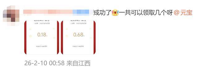 网友纷纷晒出自己领到的红包金额,“0.18元”“8.8元”“0.68元”......你领到元宝微信福袋了吗?