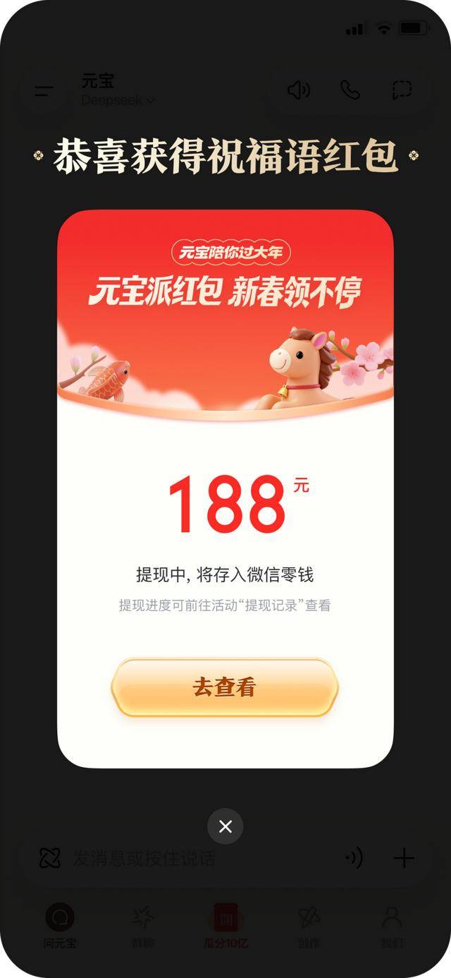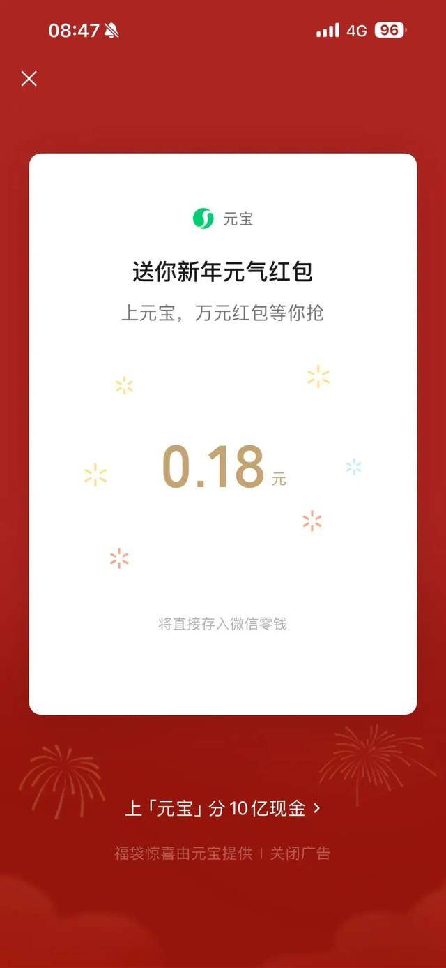 腾讯也于当天凌晨公布了抢10亿元红包的官方攻略,用户将元宝App更新到2.55.0版本以上,进入首页点击底部「抢10亿」,即可进入新春活动主会场。活动从2月1日持续到2月17日,包含“主会场抽红包”和“祝福语红包”两大核心玩法,用户最高可领万元现金红包。