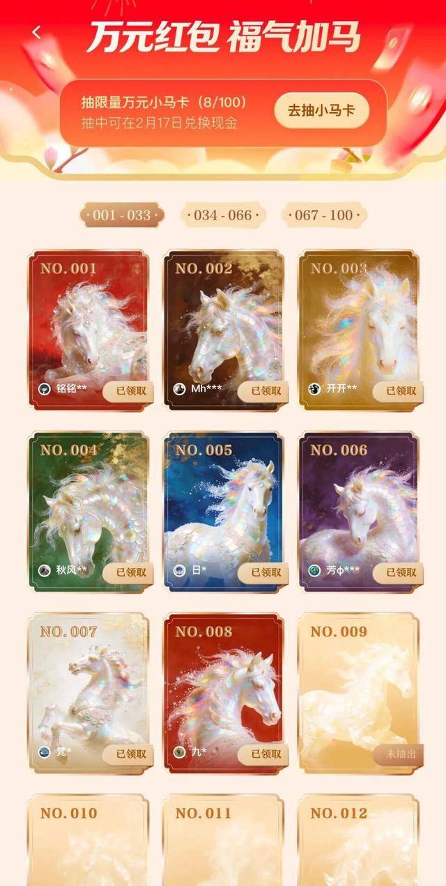 2月1日0点,腾讯“上元宝,分10亿”活动正式开启,一上线便引发了全网狂欢:一夜之间超过10张万元小马卡被“翻牌”,“元宝出钱、好友拆红包”成为新春潮流,网友纷纷晒出自己的“首晚战绩”“野生攻略”。