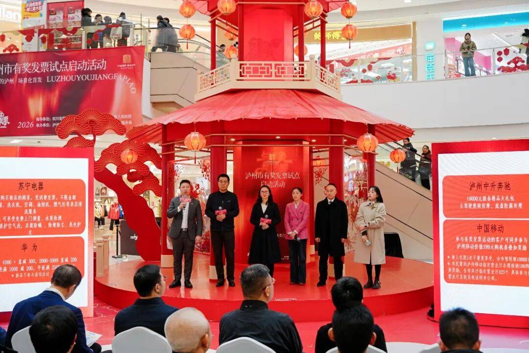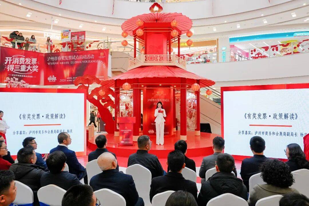 2月9日,由四川省商务厅指导、泸州市人民政府主办的泸州市有奖发票试点启动活动在万象汇举行,即日起至7月31日,所有个人消费者在我市注册登记的八大试点行业商户消费,取得单张金额满100元的真实有效数电发票即可参与抽奖。