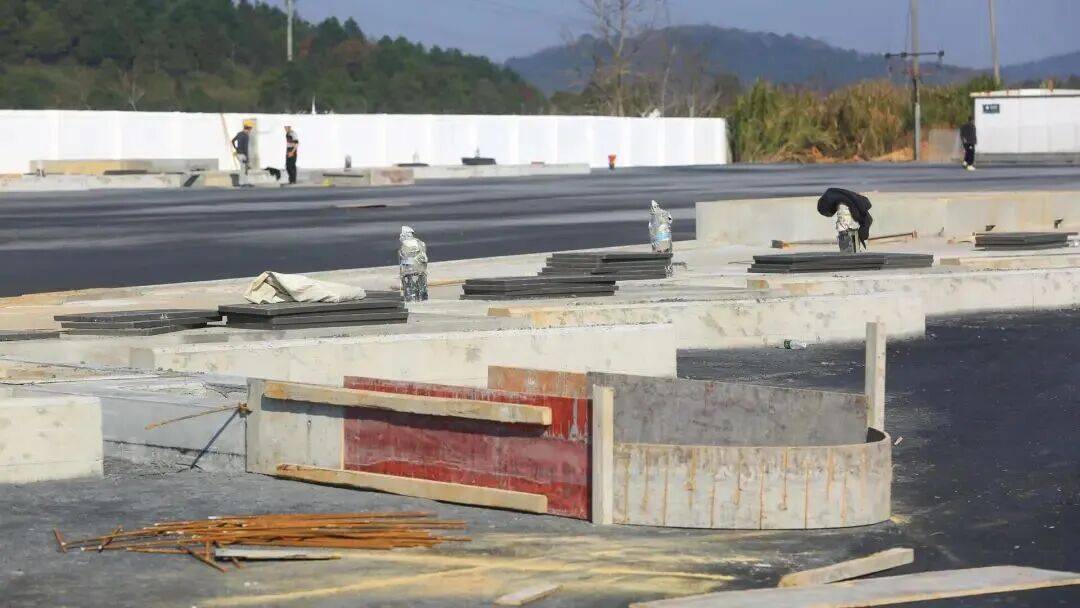 作为桂阳县重点能源项目,该超充站规划用地约 40 亩,核心打造 1 座集光、储、充于一体的新能源充电站,配套建设 720kW 高功率充电桩,其中包含液冷超充 24 台、兆瓦级充电桩 16 台。目前项目基建工程量已完成 90%,总体工程进度达 70%,工人们正抢抓工期,全力推进剩余基建施工,超充站的主体框架已初具雏形。