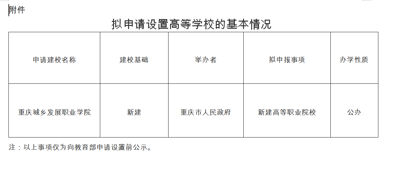 2月10日,重庆市教育委员会官网发布了关于拟申请设置高等学校的公示。公示时间为2026年2月10日至2月14日。
