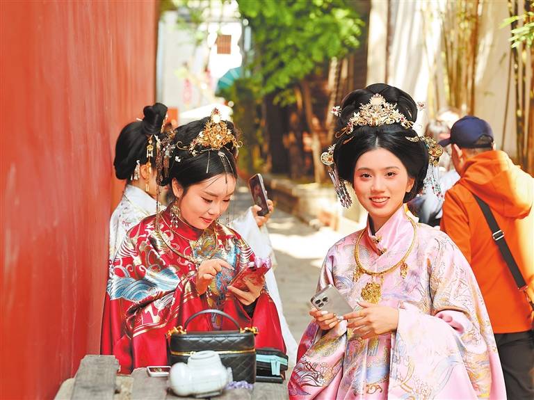 西塘旅游休闲度假区管委会副主任汪建明介绍,近年来,西塘将汉服元素与婚庆、研学、茶道等古镇旅游场景深度融合,推出“汉服+旅拍”“汉服+品茗”“汉服+游船”等体验活动,探索汉服实景剧、剧本娱乐大赛、花船巡游等全新玩法,目前已招引培育汉服类商户110余家,2025年实现汉服类营收逾2500万元。