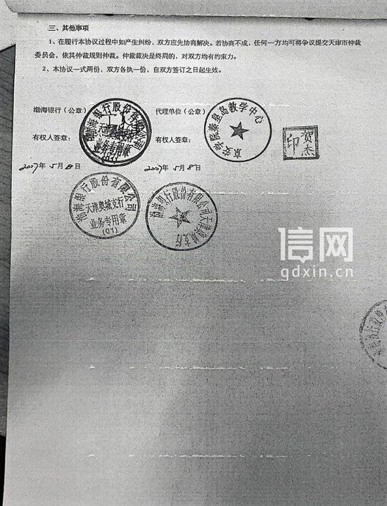 渤海银行代理集体开户协议书相关照片,代理单位为京安学院秦皇岛教学中心。(来源:受访者)
