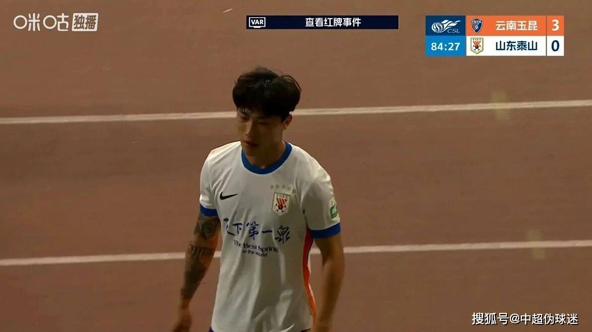 下半场易边再战,瓦科第78分钟踢飞必进球。尾声阶段,谢文能禁区踢到鲍亚雄面部,VAR介入后裁判出示红牌将其罚下。随后约尼查再入一球,最终云南玉昆4-0大胜,送泰山队赛季首败。