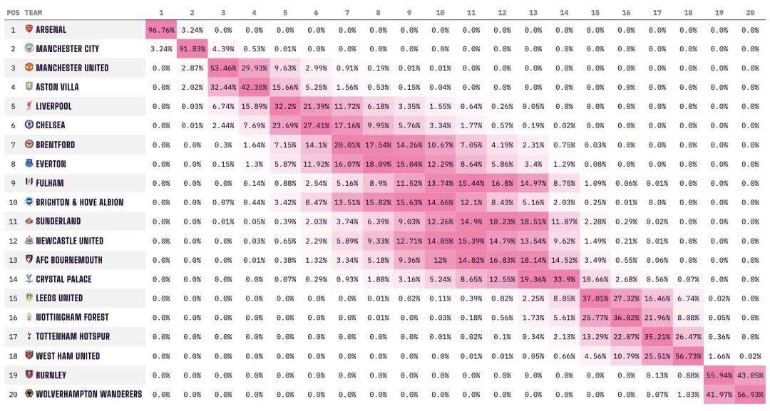然而,由于还有维拉对利物浦、利物浦对切尔西这样的直接对话,这意味着三队不可能同时达到最高积分。如果维拉拿到75分,利物浦则只有67分,如果利物浦有67分,那么切尔西最多就只有66分了。如果维拉72分,利物浦70分,切尔西同样只有66分。