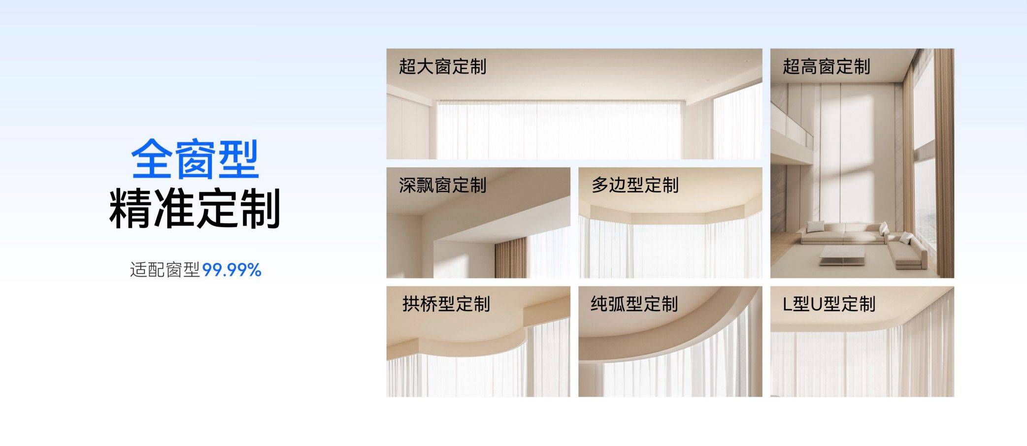 细节适配:完美适配异型窗,加厚轨道稳固顺滑,支持多元控制,兼顾实用与美学。