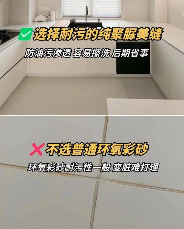 大家不想花费太多时间收拾卫生的话,厨房和卫生间的墙面地面,就用普通美缝剂,别用环氧彩砂了。