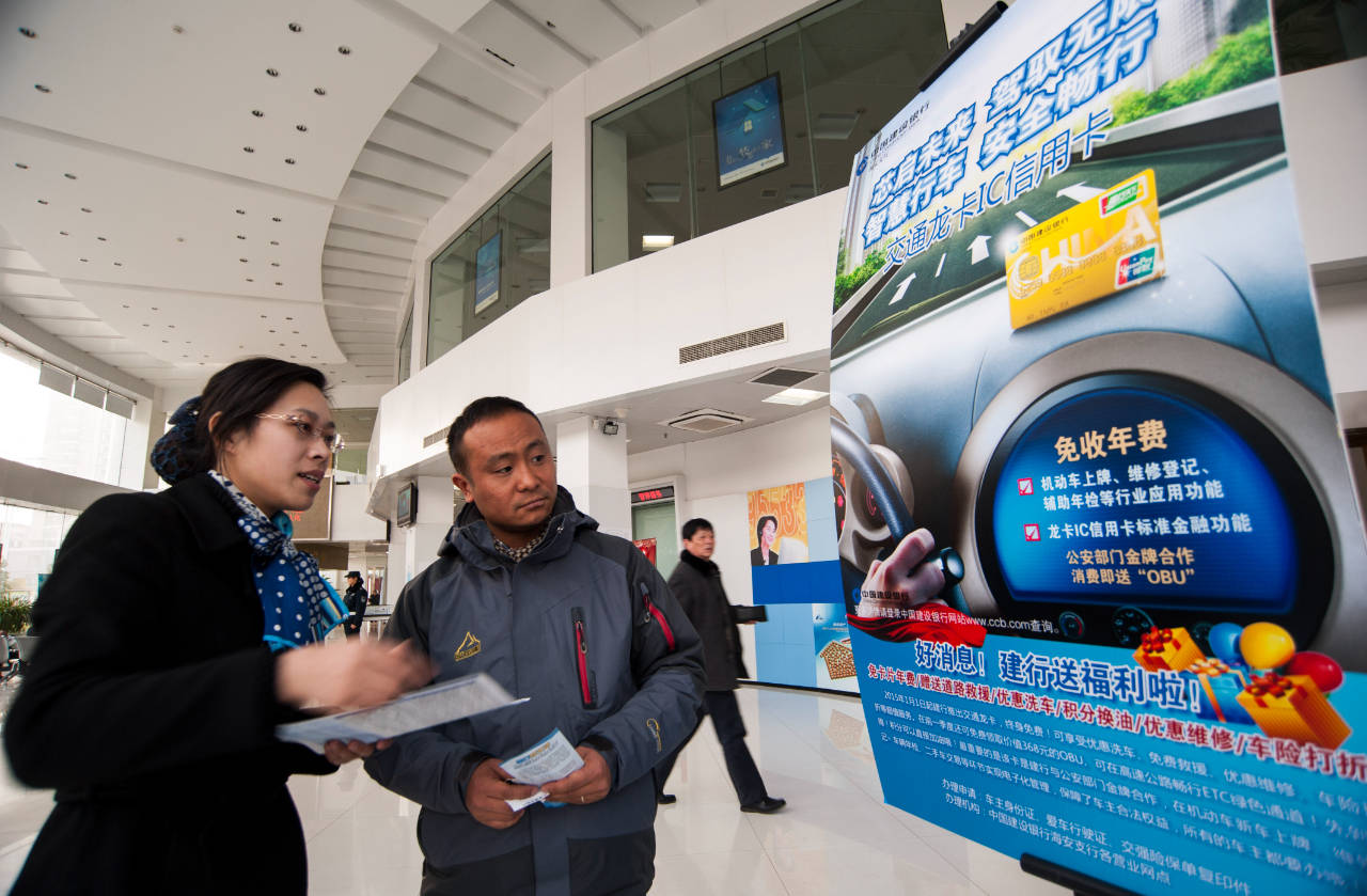银行信用卡业务正转向存量客户精细化运营。图为银行工作人员向客户介绍信用卡。(资料图,图片由CNSPHOTO提供)