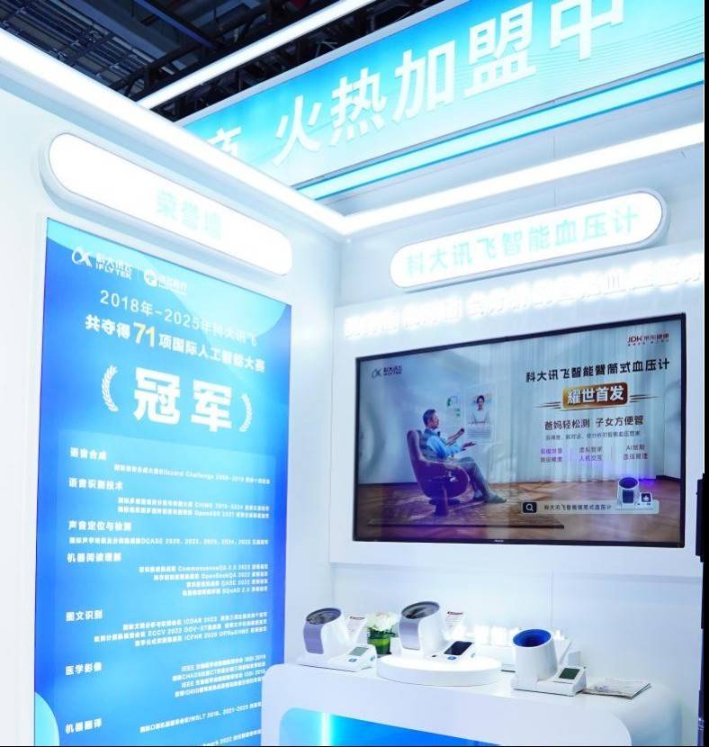 与传统血压计不同的是,讯飞智能血压计搭载了业界唯一采用全国产算力平台训练的星火医疗大模型,可深度融合用户年龄、既往病史及测量时段等多维信息,生成个性化健康解读,覆盖饮食指导、运动建议等内容;对血压异常指标可实时主动预警,并自动生成标准化结构化健康报告,为日常健康管理提供科学依据。展会现场,一位参观者在体验后表示:“测完后设备直接告诉我血压处于正常高值,建议减少钠摄入并连续监测三天,比单纯的数字更具参考价值。”