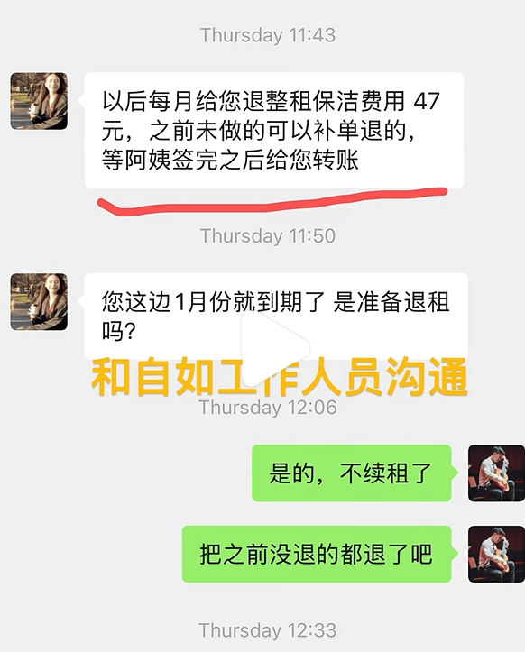 消费者称,但这个阿姨打扫的效果并不让人满意,阿姨称如果想要打扫干净需要私下里再给钱,自己觉得不划算就拒绝了,早自如客服反馈这件事情,客服一开始称不满意可以退款,但只能退六分之一的钱。