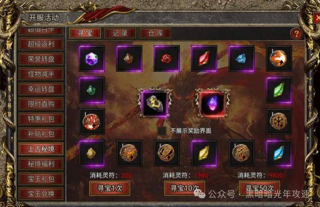 在黑暗光年游戏中深渊夺宝主要是用来获取黑暗宝玉的,二合之后每月都会出现一次。可以使用灵符或者暗灵钥匙来抽,除了抽取黑暗宝玉之外还有累计次数获取黑暗宝玉,一般一轮活动抽个5000次,优先入手648和2998档位,会更划算。