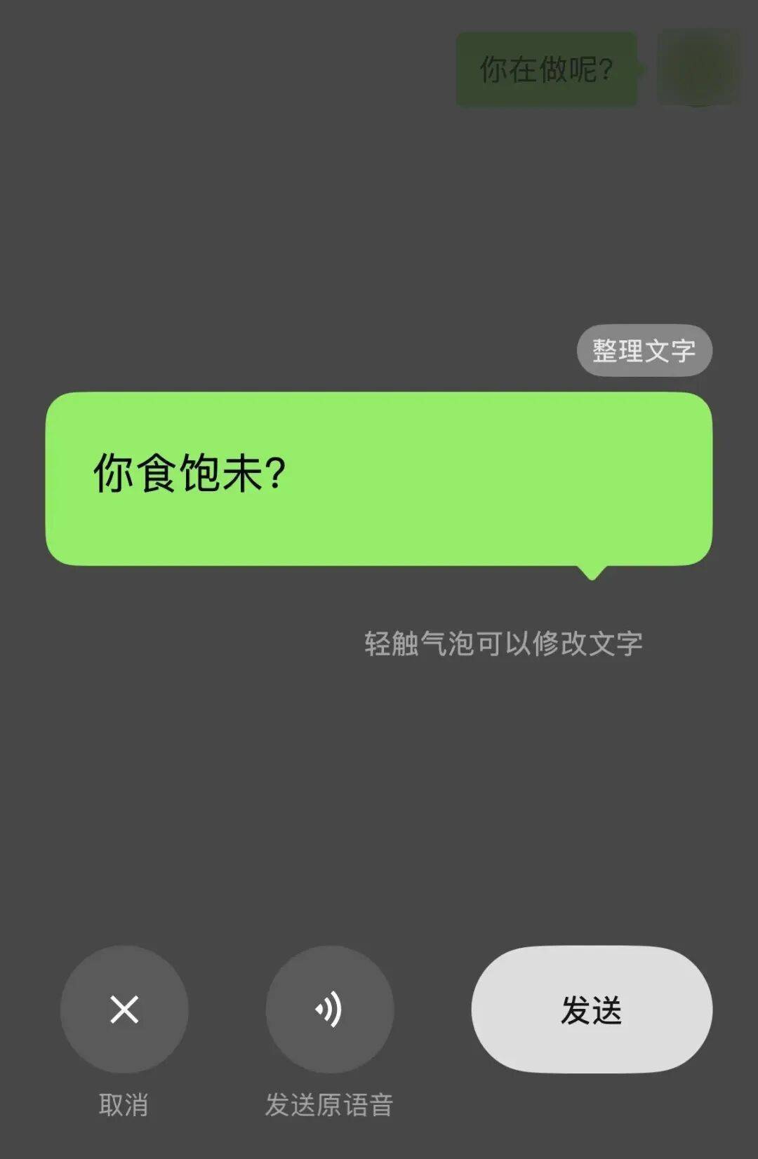 然而,这一功能已经收获不少潮汕人“点赞”:长按发语音说潮汕话,上滑选“转文字”,像“你在做尼”“你食未”“来去踢桃”等等,识别准确率挺高。