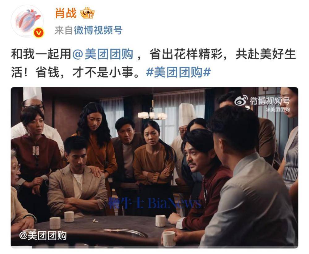 同时,肖战在个人微博发布了一条关于美团团购的宣传视频。