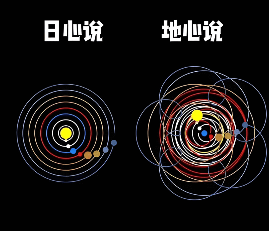 就好比日心说和地心说一样,如果要解释地心说,往往需要一重重嵌套的轨道才能大致拟合天体的运动。而一旦接受了日心说,把主要矛盾一换,只需要一个轨道就能算清楚天体的运动,世界瞬间豁然开朗了。