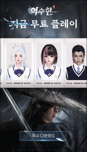 在韩国市场,针对该市场用户对MMORPG内容要求和玩家群体倾向,《逆水寒》投放了不少以「韩式审美」展示角色的创意素材。