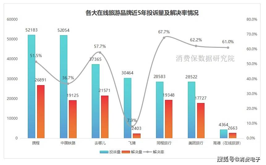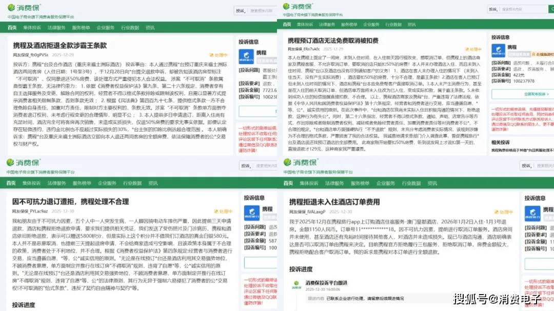 截至12月29日,消费保平台共收到携程在线旅游行业相关投诉5.476万件;累计涉诉金额超1.494亿元,投诉解决率为52.5%。