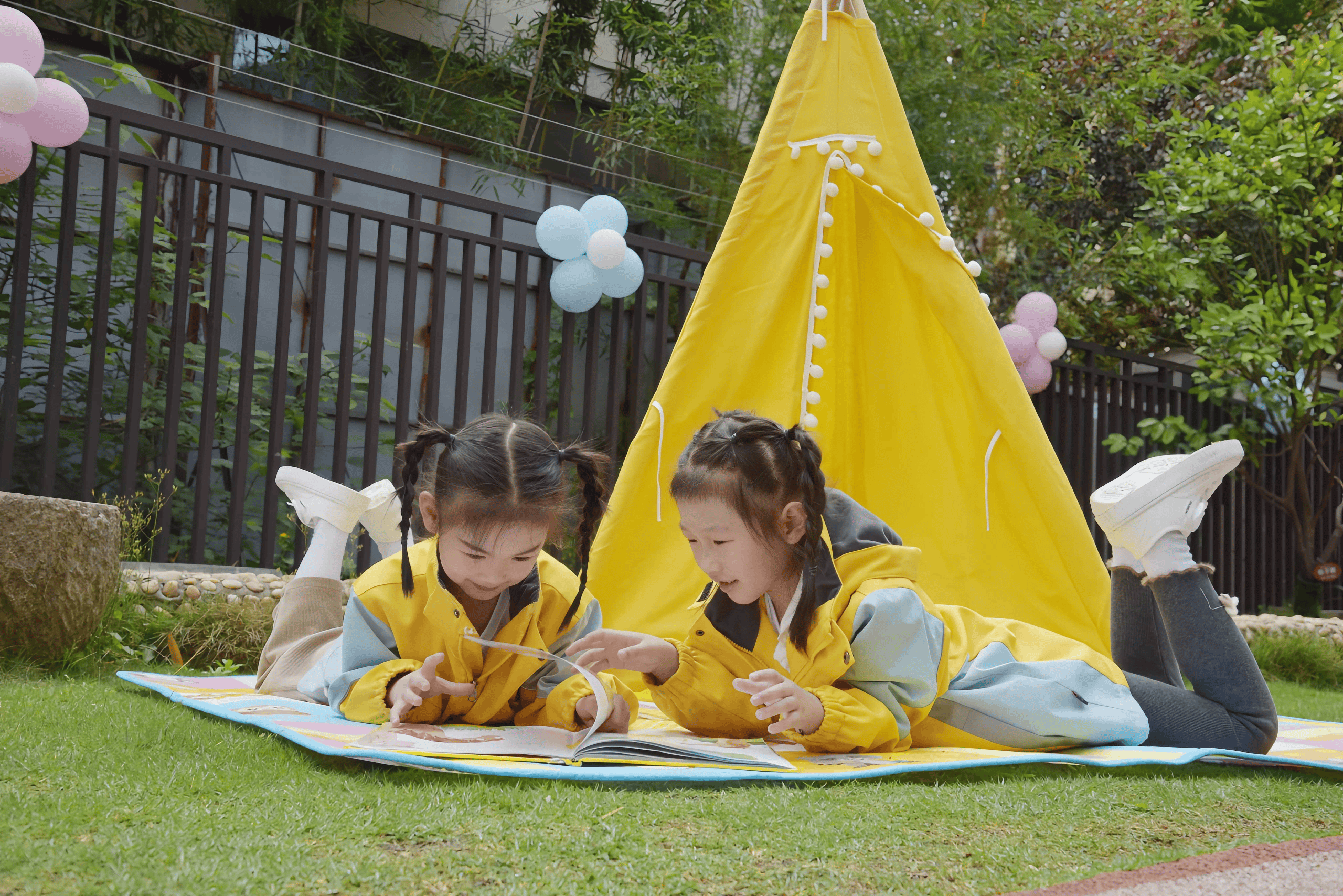 北街幼儿园幼儿在户外阅读空间感受阅读之美。