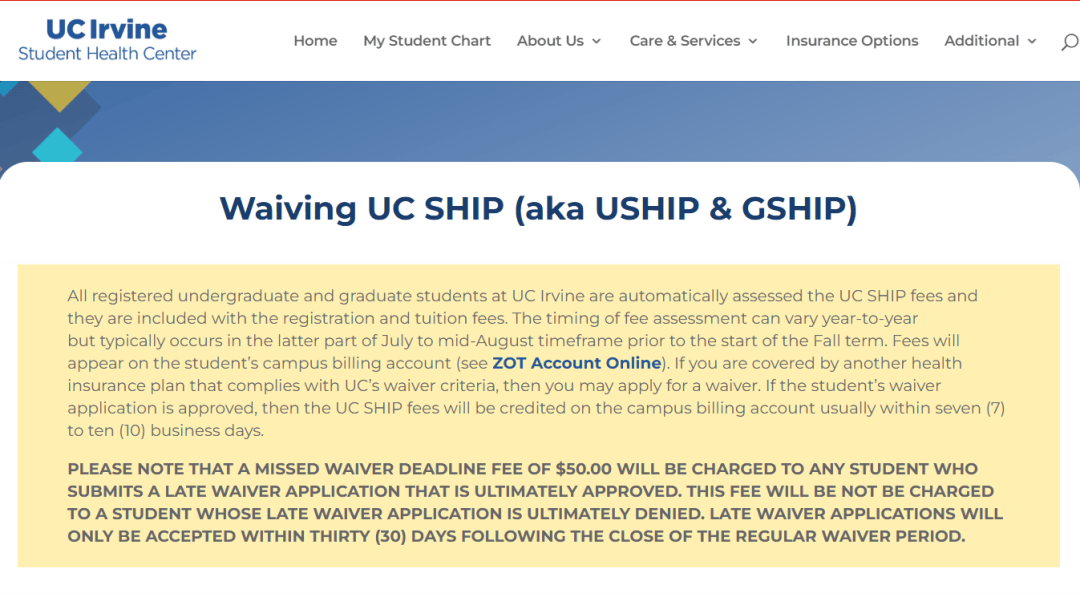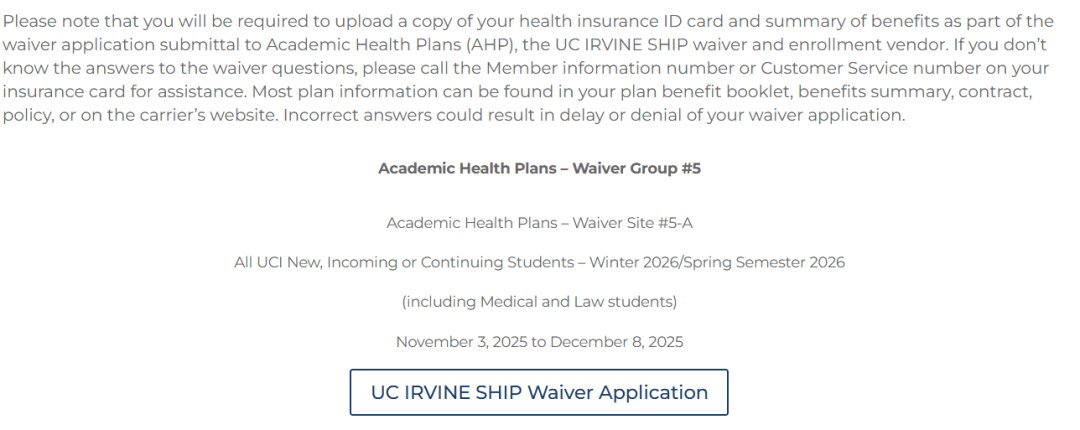 输入网址:https://studenthealth.uci.edu/waiving-uc-irvine-ship/