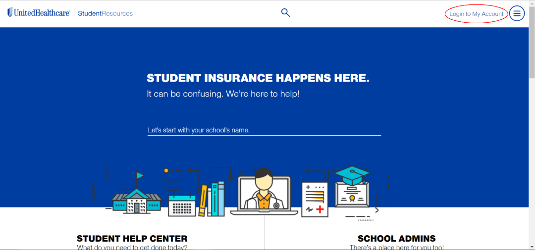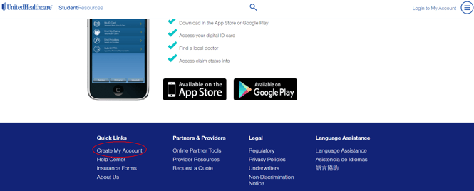 (曾经购买过UnitedHealthcare保险的同学可以直接点击Login to My Account)