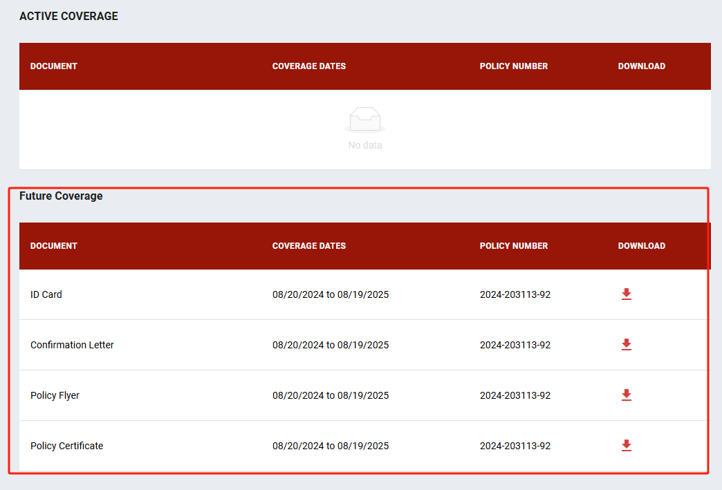 如果新保险目前尚未开始生效,请从 Future Coverage 部分下载文件