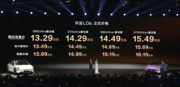 【CNMO科技消息】11月18日,深蓝汽车举行深蓝L06价格及权益发布会,宣布这款全新中型新能源轿车正式上市。新车共推出4款配置,限时权益价区间为13.29万元至15.49万元,提供纯电与增程两种动力选择。