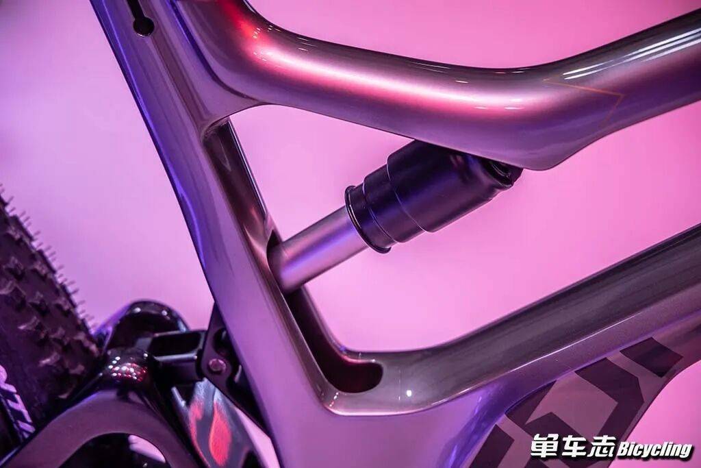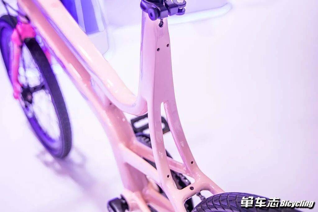 ▲后三角部分采用小三角几何,特别后上管做了打扁设计,提升纵向的一个刚性支撑。