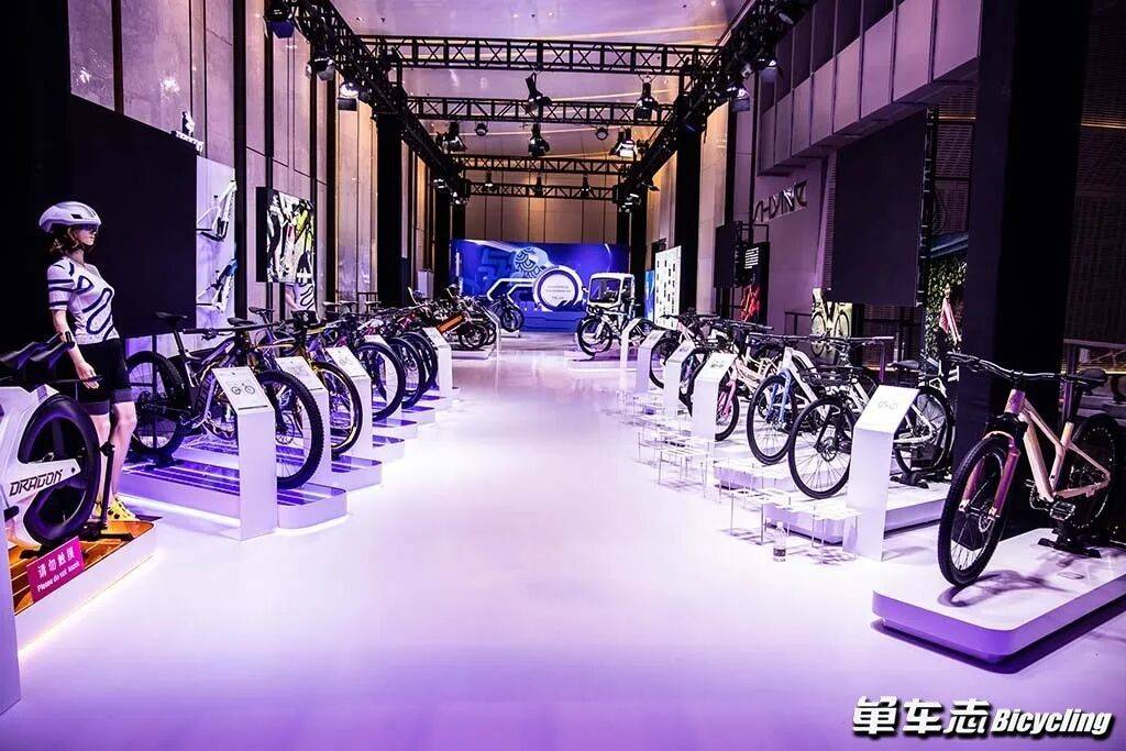 ▲会议场内的经典时光隧道后是永久一众产品展示区,从靓丽的女骑品牌申丽、集聚尖端科技的概念车型以及爆火的龙牌系列公路、山地碳纤维整车等等。