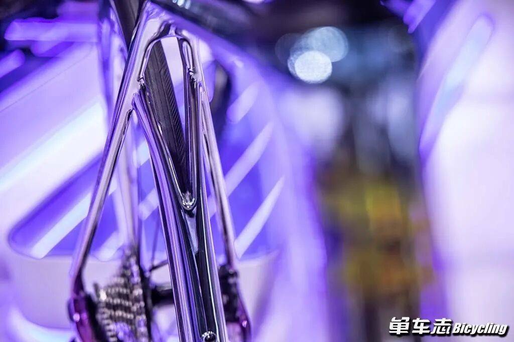 ▲去过2025上海车展的车迷一定对这台电镀银蓝紫的庚辰碳纤维公路车印象深刻,独具一格的电镀风格让无数粉丝为之倾倒。