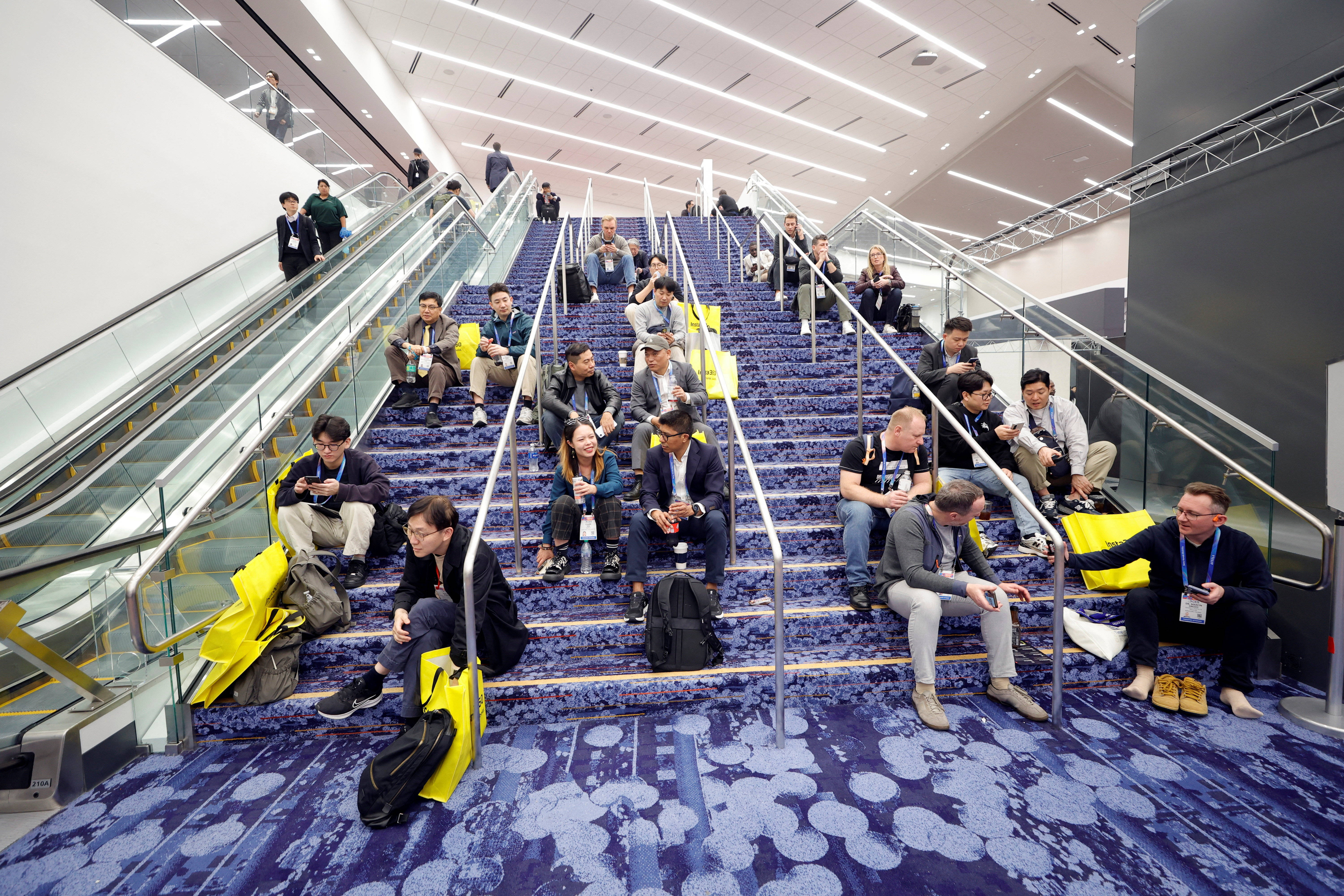1月6日,人们在参加美国拉斯维加斯消费电子展的间隙休息。 新华社/路透