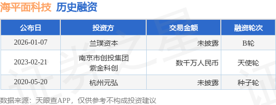 证券之星消息,根据天眼查APP于1月7日公布的信息整理,江苏海平面数据科技有限公司B轮融资,融资额未披露,参与投资的机构包括兰璞资本。