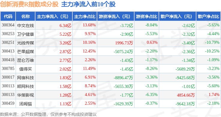 资金流向方面,创新消费R(470041)指数成份股当日主力资金净流入合计30.6亿元,游资资金净流出合计19.15亿元,散户资金净流出合计11.45亿元。成份股资金流向详情见下表: