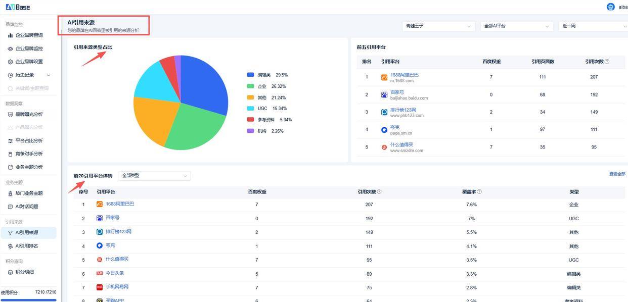 一周后,你会得到基线数据:平均曝光度、各平台提及次数、主要引用来源。