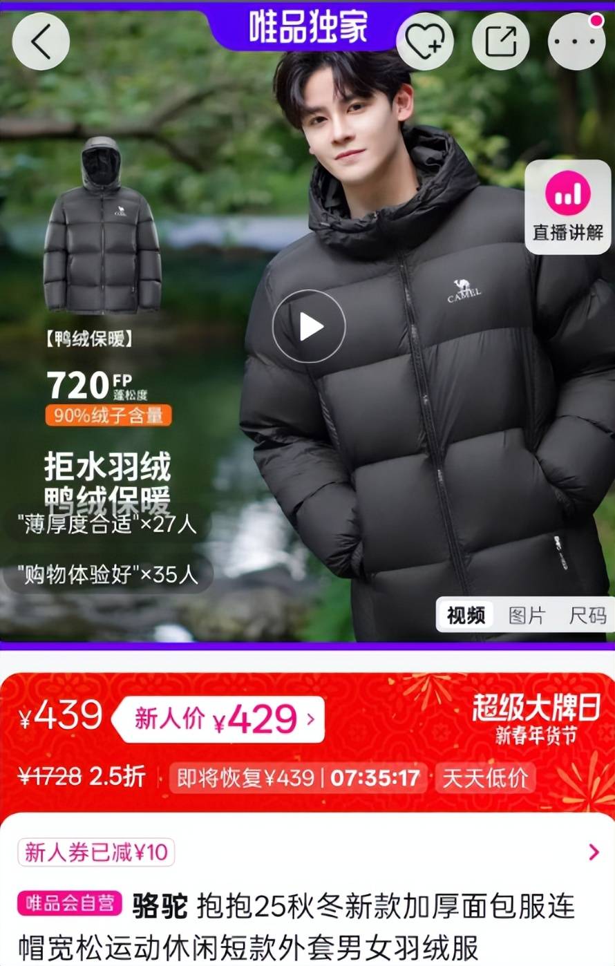 尤其是在最近开启的年货节活动中,众多服饰穿戴类商品的折扣力度都达到了和双11、618同等的优惠力度。原价1728的骆驼运动羽绒服,直接被打到了400出头,便宜了足足1000多块,成为不少消费者为家人置办品质新衣的首选。