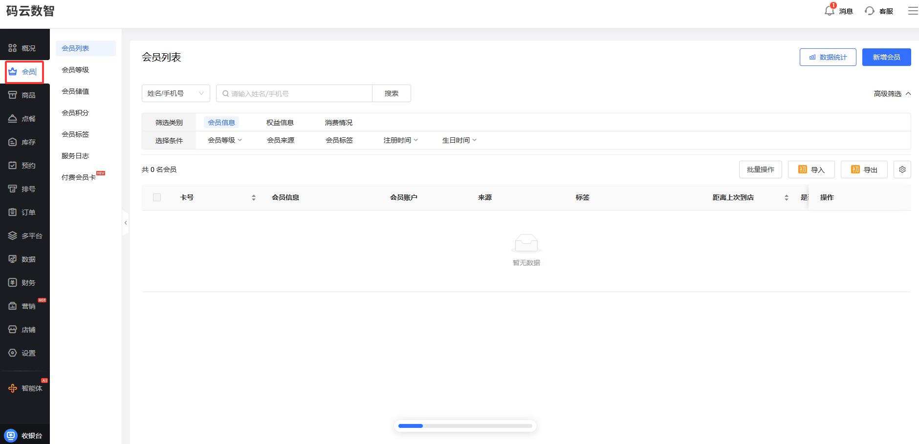 百度搜索【码云数智】,在【码云数智】平台注册账号,产品类型选择--门店系统