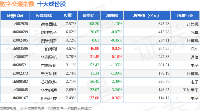 数字交通(980075)指数十大成份股详情如下: