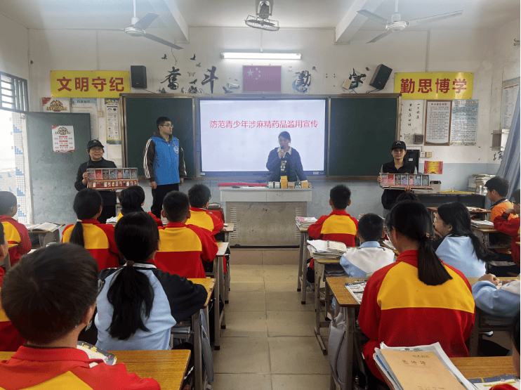 接着,禁毒社工走进教室以真实案例为切入点,用同学们听得懂、易接受的语言,详细介绍了传统毒品、合成毒品的种类与特征,尤其聚焦涉麻精药品、新精神活性物质等成瘾性物质的隐蔽危害——它们常伪装成“奶茶粉”“巧克力”“邮票贴纸”等常见零食、文具,极具迷惑性,一旦误食或滥用,不仅会严重损害身心健康,还会给家庭和社会带来沉重负担。社工还手把手传授了识别成瘾性物质的小技巧、遇到涉毒情况的正确应对方法,引导大家从心底树立“拒绝毒品,从我做起”的坚定信念。