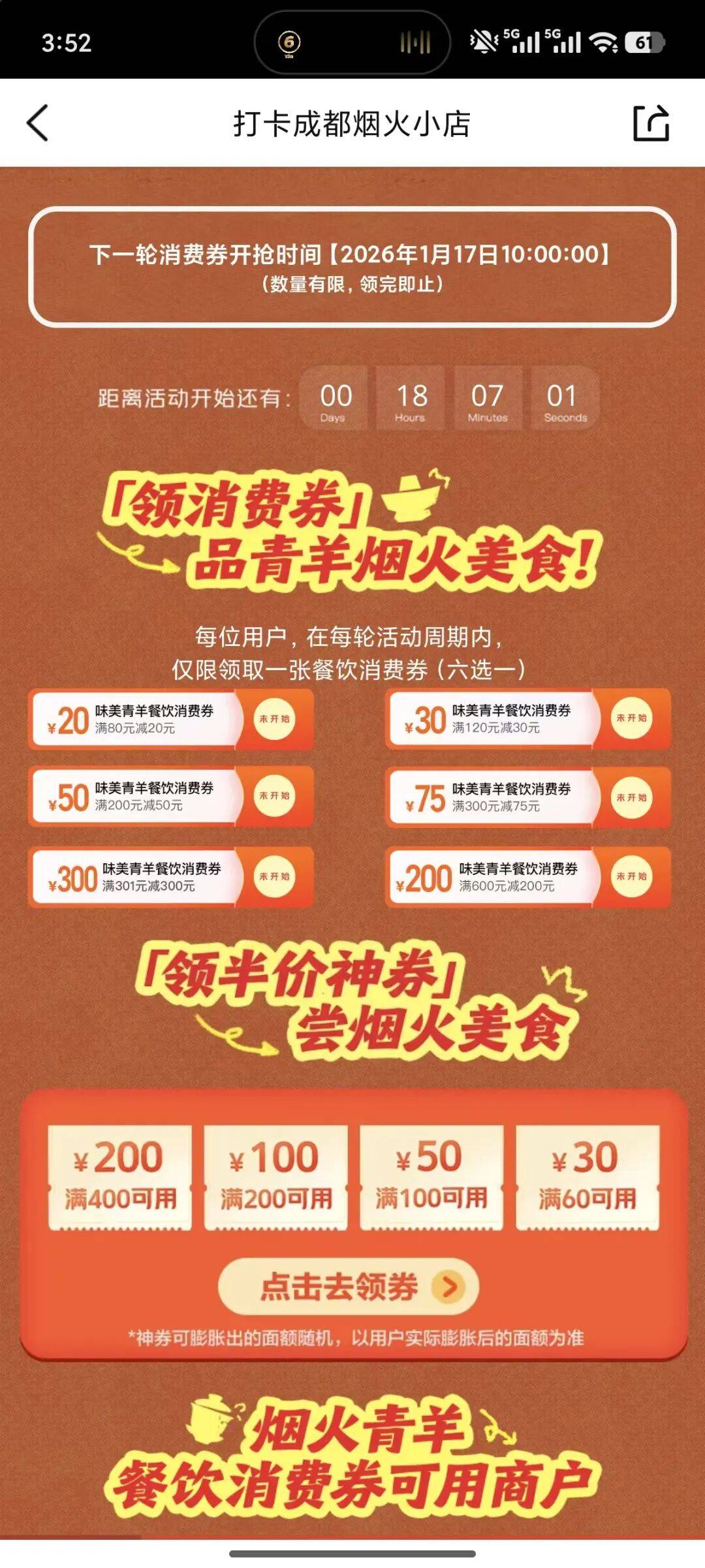 打开大众点评App搜索" 成都烟火小店/青羊餐饮消费券",或扫描奎星楼街及活动商户铺设的活动二维码,便能直达活动会场。数量有限,先到先得!