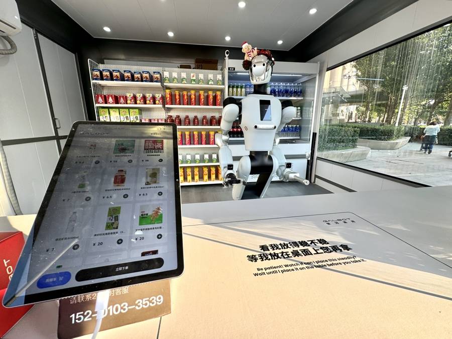 图为位于浦东陆家嘴区域的“银河太空舱”——具身智能机器人零售商店。