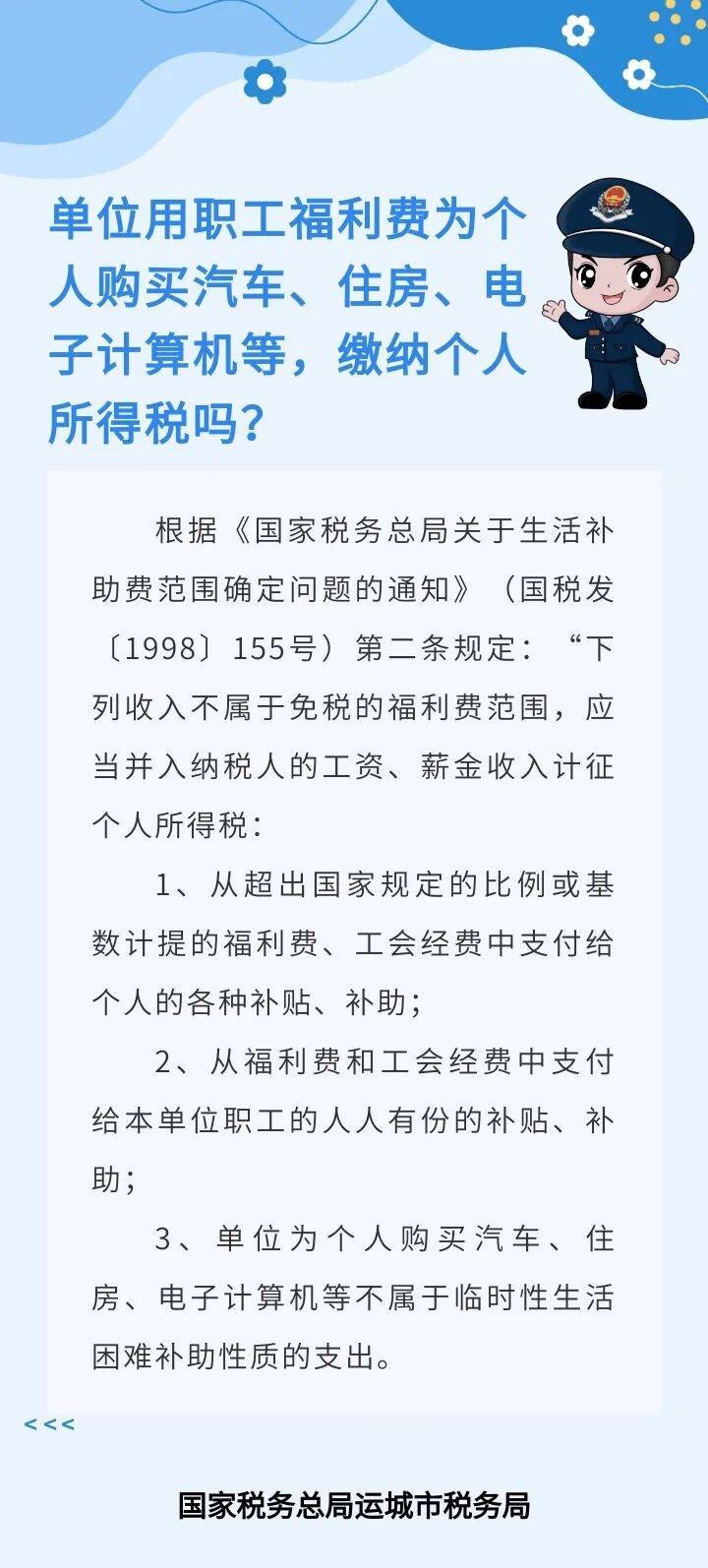 【政策速递】单位用职工福利费为个人购买汽车、住房、电子计算机等,缴纳个人所得税吗?