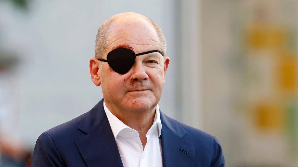 在社交媒体上,还有人将马克龙处理眼部问题的方式与德国前总理朔尔茨相比。后者在摔倒受伤后,戴着眼罩出席活动。
