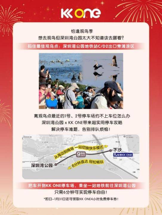 KK ONE:观鸟免费停车4小时、爱豆应援痛楼。地铁9号线直达,适合追星族和观鸟达人。