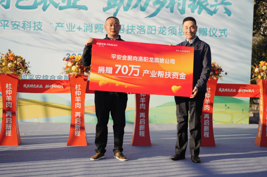 活动中,平安公益基金会受平安金服、平安科技委托,向洛阳市乡村振兴协会捐赠70万元产业帮扶资金,专项用于龙须坡公司杜仲羊肉生产加工车间的升级改造。同时,平安金服、平安科技还与龙须坡公司签订了60万元消费帮扶采购意向订单,通过平安工会体系加大采购力度,形成“输血”与“造血”并重的可持续帮扶机制。
