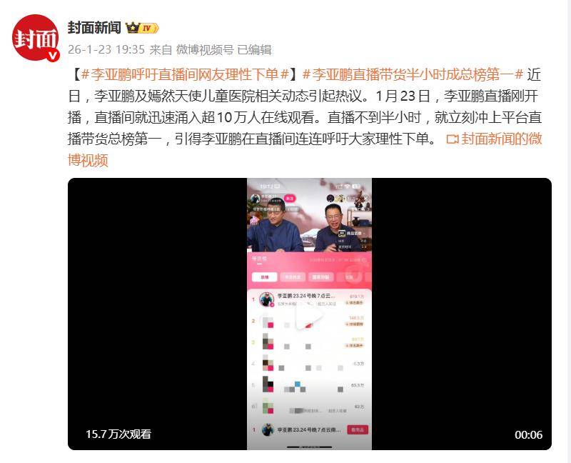 李亚鹏在直播间那句“我知道大家为什么来”,双方其实早已心照不宣。当“理性下单”的呼吁遇上“就想为你买单”的力挺,这场登顶榜一的直播,卖出的不仅是年货,更是一份众人拾柴火焰高的暖意。下一次直播,或许他依然会劝大家冷静,但网友们的手速,可能还是会诚实地给出自己的答案。