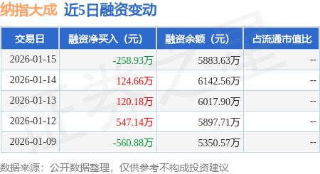 证券之星消息,1月15日,纳指大成(159513)融资买入3497.1万元,融资偿还3756.03万元,融资净卖出258.93万元,融资余额5883.63万元。