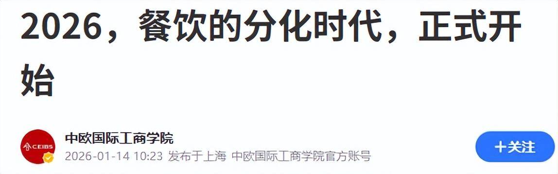 信源来源:中欧国际工商学院 2026-01-14 2026,餐饮的分化时代,正式开始