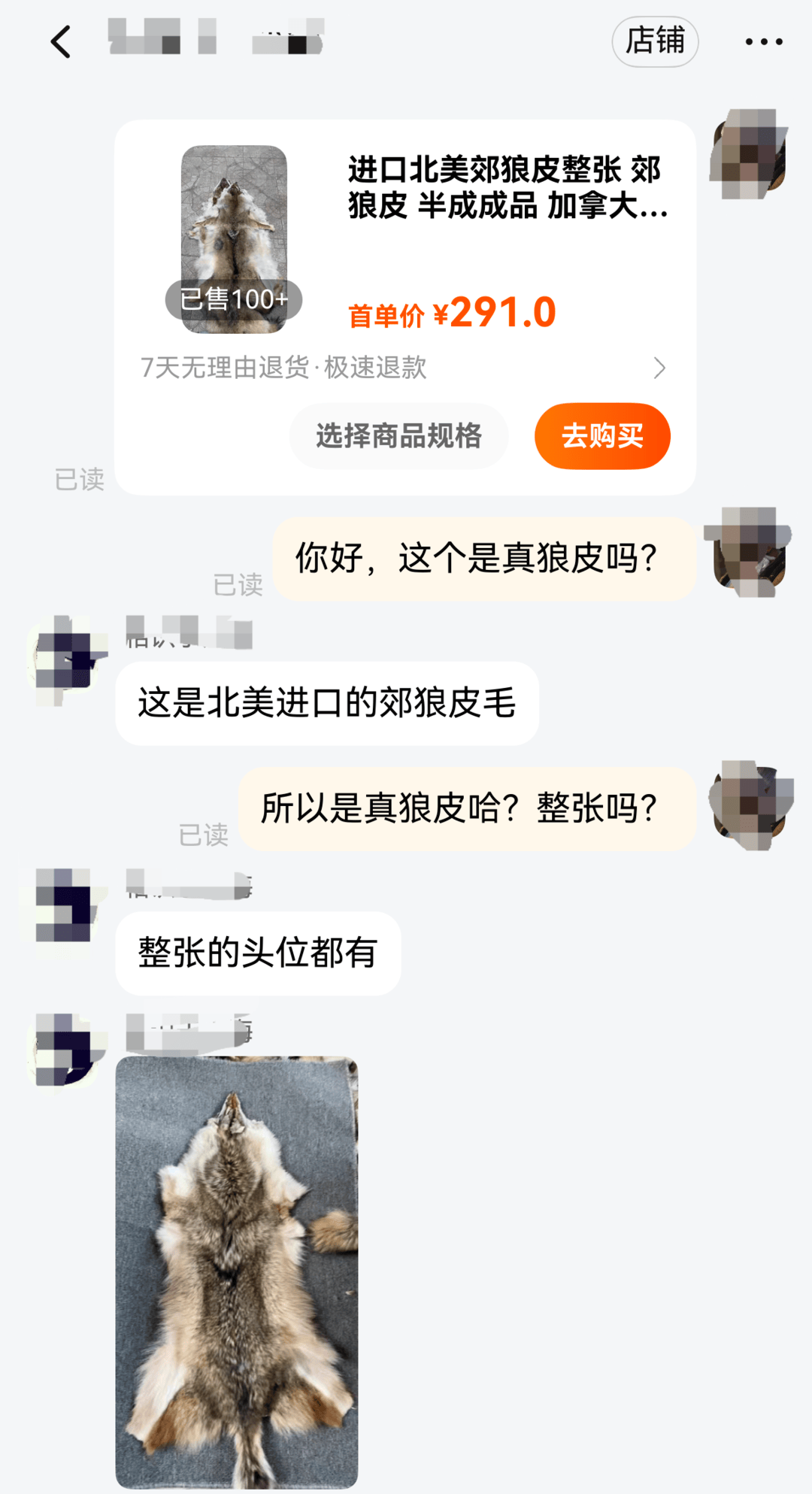 商家称狼皮合法进口有相关手续